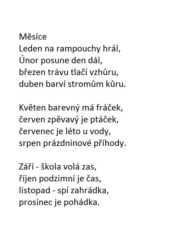- Třídní kolo recitační soutěže si uděláme v pondělí 5.2.2018. Pomozte dětem vybrat nějakou básničku(nesmí být z čítanky), která bude mít 4 nebo více slok, a kterou se naučí recitovat. Společně vybereme 2 zástupce, kteří nás budou reprezentovat ve školním kole v pondělí 19.2.2018.