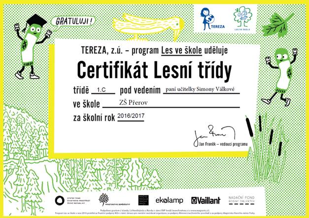 - Pokud nám počasí bude přát, vyrazíme ve čtvrtek 24.11. třetí a čtvrtou vyučovací hodinu do Michalova v rámci projektu: "Les ve škole". Pracovní sešit do ČJS si nechají děti doma. Prosím, vybavte děti teplým oblečením a vhodnou obuví. Moc děkuji.